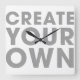 Create your own clock. Add your own image and/or text to design your own customized product. Simply click "Change" in the image section and upload your own graphic. Add text by clicking on the "Add Text" button in the "Customize It" Sektion. By WRKDesigns.