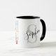 Create a personalized coffee mug featuring custom monogram initials in modern typography and elegant script calligraphy name alongside four of your favorite photos in a grid collage design. A thoughtful gift idea for family and friends.