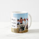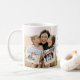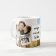 Create your own custom photo coffee mug featuring 6 of your favorite pictures in a modern trendy collage design alongside personalized text in script calligraphy typography.