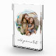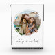 Create your own custom photo block. This acrylic block print features one of your favorite pictures in a circle shaped watercolor brush stroke frame and personalized text for any occasion. A great gift for family and friends or your own photo memory keepsake.