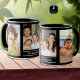 Custom photo collage coffee mug to personalize with 3 pictures and family name.