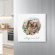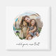 Create your own custom photo magnet. This magnet design features one of your favorite pictures in a circle shaped watercolor brush stroke frame and personalized text for any occasion. A great gift for family and friends or your own photo memory keepsake.
