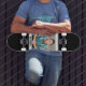 This custom skateboard features your own photo printed in the center back for a bold, personal touch. The design includes a clean white bar beneath the photo, giving you a dedicated spot to add your name in a bold black font for a crisp, modern look.