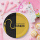 Einzigartige Teller mit Glückwünschen und klassischem Schwarz-Gold-Graduierungssockel auf goldenem Hintergrund. So passen Sie Text an, um den Namen des Absolventen der höheren Klasse hinzuzufügen.