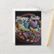 This holiday postcard features several colorful Easter eggs resting in an artistic basket.
