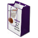 Basketball Geschenktasche mit Basketballkorb Bild und lustiger Linie. Bearbeiten Sie den Text, um den Namen Ihres Lieblings-Basketballspielers, Coaches oder Mannschaftssportfans hinzuzufügen.