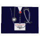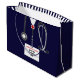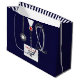 Einzigartige Geschenktasche für Ärztegrad mit marineblau-blauen Hospital-Skulpturen und Stethoskop für den Abschluss. Bearbeiten Sie den Text, um den Namen und die medizinischen Referenzen des Arztes, Arztes oder Pflegepersonals hinzuzufügen.