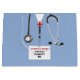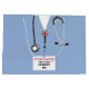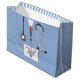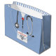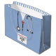 Einzigartige Geschenktüte für Ärzte mit blauen Hospital-Skulpturen und Stethoskop für den Abschluss. Bearbeiten Sie den Text, um den Namen und die medizinischen Referenzen des Arztes, Arztes oder Pflegepersonals hinzuzufügen.