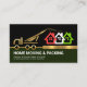 Ein schwarz-grün lackiertes Cover wird durch einen goldgelben Kranrahmen abgegrenzt, der drei farbenfrohe Zuhause als Ladung befördert. In der Nähe der Basis finden Sie den Firmennamen und die Kontaktdaten. Auf der Rückseite, in einem schwarzen Cover, befindet sich oben ein goldenes Zuhause-LKW-Logo, das Sie verwenden können. Darauf folgen der Firmenname, die Kontaktdaten und ein Slogan zur Werbung für Ihre Dienste. Eine tolle Karte für LKW-Transport und Zuhause-Umzüge.