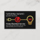 Ein ganz schwarzes Cover mit einem kreativen Imitat goldener Zuhause-Elektroverdrahtung, der in der Mitte einen roten Power hat. Oben auf der Karte liegt Ihr angesehener Name und Ihr Jobtitel. In Richtung der Basis ist der Firmenname "Zuhause Electrical Service" mit den Kontaktdaten. Oben ist ein goldenes Plug-Logo, das Sie verwenden können. Darauf folgen Ihr Name, Ihre Kontaktdaten und eine Slogan-Beschriftung, mit der Sie Ihre eigenen Servicebedürfnisse in Anzug setzen können. Alle Schriften sind in Imitat Gold. Das ist eine Kreativkarte, die für Elektriker gemacht wurde. #electrician #electrical #electritragnant #electricalis repariert #electrical #electriengineering #lighting #lighting #lighting #bulb #plug #zazzlemade