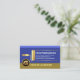 Auf der Rückseite, in einem blauen Cover, befindet sich das goldene Zuhause-Logo oben, gefolgt von Ihrem angesehenen Namen, den Kontaktdetails und einer Slogan-Beschriftung, um Ihre Dienstleistungen zu veröffentlichen.