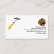 Das Design umfasst einen Steinwall mit einer Holzplakette. Die perfekte Symmetrie der Tafel zeigt den Ausführungsstandard des Auftragnehmers. Oben liegt Ihr goldenes Imitat-Zuhause-Logo, das Sie verwenden können, gefolgt von Ihrem renommierten Namen und Jobtitel. Hinter einem weißen Cover befindet sich ein abstraktes Design eines Hammers an der links Seite. In der anderen Richtung liegt Ihr goldenes Logo, gefolgt von dem Firmennamen, seinen Kontaktdaten und einer Slogan-Option, um Ihre Dienste zu bewerben. Eine großartige Karte für Gebäude- und Bauthemen. #handyman #construction #buildingtrading #homerepair #tragner