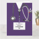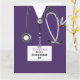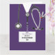 Einzigartige Krankenschwester-Abschluss-Karte mit lila Klinikscheuchen, einem Stethoskop und lustiger Schweizer Armeemesserkultur. Um für Krankenschwester personalisieren bearbeiten Sie Text, um sie oder seinen Namen hinzuzufügen.