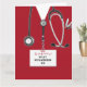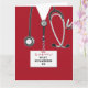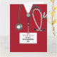 Einzigartige Krankenschwester-Abschluss-Karte mit roten Krankenhauskeuchen, einem Stethoskop und lustigem Schweizer Armeemesser. So personalisieren Sie Text bearbeiten, um den Namen der Krankenschwester hinzuzufügen.