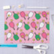Creative pickleball Spieler Geschenkpapier oder Party Dekoration mit heißen rosa und cool grünen Paddeln und gelben Kugeln Muster auf einem rosa Hintergrund.