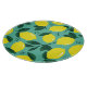 Vintages Sommermuster mit Zitronen, Blume und Blätter. Nahtloses Design. Die Sommervibes werden in diesem Muster lebendig, mit Zitronen, Blume und Blätter geschmückt. Vintages Sommermuster: Zitronen, Blume und Blätter vereinen sich. Zitrone, Muster, nahtlos, ganz, Hintergrund, Obst, Textur, Blatt, Blume, Essen, Sommer, Natur, grün, Kreis, orange, tropisch, Stoff, gesund, bunt, Ornamente