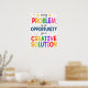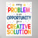 JEDES PROBLEM IST EINE GELEGENHEIT FÜR EINE KREATIVE LÖSUNG! Lassen Sie Schüler/Klienten mit diesem durchdachten, hellen und fröhlichen Poster nachdenken. Ein stilvolles und großartiges Klassenzimmer/Beraterposter, das Schüler dazu bringt, über den Tellerrand zu denken und das Problem in eine Art und Weise umzuwandeln, kreativ zu sein und eine sinnvolle Lösung zu finden! Ein großartiges Poster, um in einer Mittelschule oder einem High School-Klassenzimmer aufzuhängen. Auch ein ausgezeichnetes Poster für Schulberatungsbüros, Hauptbüros, Therapeuten oder Psychologen, um Kinder und Jugendliche daran zu erinnern, dass es alles um Perspektive geht und dass sie jetzt die Fähigkeit haben, ihr eigenes Leben zu verändern, indem sie kreative Lösungen für ihre Probleme suchen!