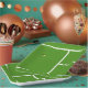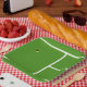 Einzigartige Tennis Party Teller mit gelbem Tennisball auf einem Tennisplatz. Fügen Sie Ihren Text zu anpassen.