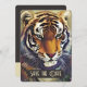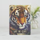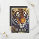 Wow Freunde und Familie mit einer modernen, kreativen Tiger Save the Date Einladungskarte. Die Vorderseite der Karte weist ein Tigerdesign mit "Save the Date" auf. Details zum Ereignis sind auf der Rückseite zusammen mit einem QR-Code. Der QR-Code kann für Ihre UAWG, Website (u.a.) verwendet werden. Erdfarben. Benutzerdefiniertes Tigerdesign. Verwenden Sie die Vorlage zum Personalisieren.