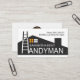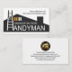 Cover bietet ein kreatives Dachdesign mit einer Leiter, die als "H" für das Wort "Handyman" fungiert. Über dieser Beschilderung befindet sich Ihr Prestigename mit den Kontaktdaten in der oberen rechten Ecke. Auf der Rückseite, in einem weißen Cover, befindet sich oben ein goldenes Zuhause-Landschaftslogo, das Sie verwenden können. Danach folgen Ihr Name, die Kontaktdaten und ein Slogan, um Ihre Dienste bekannt zu machen. Eine tolle Karte für Handwerker, General und Gebäude-Vertragspartner.