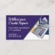 Eine beeindruckende Visitenkarte mit einem Rechner und Kreditkarten auf einem blau-weißen Hintergrund. Diese tolle Karte würde gut für ein Kreditreparaturunternehmen oder ein Finanzmanagement-Berater funktionieren. Einfach mit Ihren eigenen Firmeninformationen personalisieren.