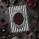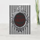 Creepy Christmas Card. © Dunkles Herz Wünsche. Diese Weihnachtskarte ist aus schwarz-weißen Streifen mit einem silberweißen Rahmen. Im Rahmen ist ein schwarzer Hintergrund und die Worte haben ein gruseliges Weihnachten in rot. Es ist innen leer, damit du deine eigenen Weihnachtsnachrichten hinzufügen kannst.
