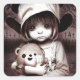 Creepisches Kind mit Scratched up Teddy Bear Quadratischer Aufkleber