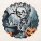 Eine unheimlich schöne Halloween-Szene mit einem Skelett in einem Kürbis, umgeben von unheimlichen Elementen.