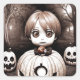 Creepy Child with Giison Apple in Pumpkin Quadratischer Aufkleber