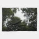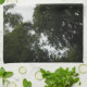 Dieses phantastische Küchentuch zeigt ein Foto aus einem dichten Wald. Das Foto zeigt die Dunkelheit der Bäume und einen kleinen Bereich des grauen Himmels. Das Ergebnis ist eine unheimliche und stimmungsvolle Szene.