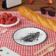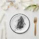Halloween-Teller in Weiß, mit einem grauen und schwarzen Ring um den äußeren Rand und Aquarellbilder eines gruselig aussehenden Geistes in Schwarz. Passen Sie diese Platte an, um Ihren eigenen Text hinzuzufügen. Passende Servietten und Papierbecher sowie andere Party-Vorräte sind erhältlich.