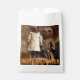 Creepy favor bag features sepia vintage look photograph of two pumpkin head kids with customizable text.