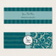 Ein nahtloses, blumengeschmücktes Juwelenton, aquamarin und silberfarben, oben Vintage Streifen im aquamarinen und aquamarinischen Stil, unten mit einem Bändchenüberlagerungsbild mit einem anpassbaren Siegel aus Monogramm.