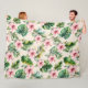 Creme Blush Pink Tropische Blätter Hibiskus Blume Fleecedecke