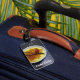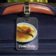 Creme brulae auf Tonschiefer mit Himbeere und Vani Gepäckanhänger