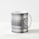 Creme & Grau-Karierter Monogramm-Letter Tasse
