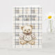 Creme-grauer Karierter Streifen-Teddybär Geburtsta Karte
