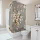 Creme, rosa Blume auf grau. Duschvorhang