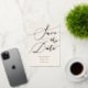 Elegante Save the Date Karte mit handgeschriebenem Kalligrafietext, der "Save the Date" in Rose Gold auf cremefarbenem Hintergrund steht. Sie können ein Foto auf der Rückseite hinzufügen.