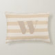 Neutrales Akzent Kissen mit cremefarbenen und bräunlichen Streifen mit einem typischen Monogramm-Brief in einem dicken Schriftart. Die Dekoration ist in einem eleganten, trendigen Stil gehalten.