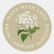 Der klassische Serifentext umkreist eine antike Abbildung einer cremefarbenen und hellgrünen Hydrangea-Blüte auf diesem beigen, hübschen, großen, tausendjährigen Geschenkaufkleber. Personalisieren Sie den Text, um einen Firmennamen oder persönliche Informationen über Ihre handgefertigten Produkte zu teilen oder als elegante Art, Geschenke zu geben, die mit Liebe an Ihre Freunde und Familie gemacht werden.