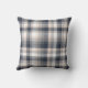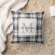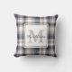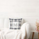Rustikales und gemütliches Creme- und Heather-graues kariertes Musterkissen mit hellgrauem Monogramm-Buchstaben und vollständigem Namen in dunkelgrauem Schriftzeichen. Die Rückseite dieses Kissens ist voll kariert.