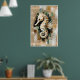 Ein Cream & White Seepferd treibt auf einem Abstrakten Hintergrund. Die braunen Vintagen Buchseiten umgeben das Seepferd mit einer Abstrakten Farbpalette aus dem ersten Ton. Ocean Academia Inspiriere diese digitale Printwerbung.