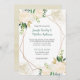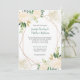 Moderne Hochzeitseinladungen in Aquarellfarben mit cremefarbenen und weißen Rosen, goldgelbem Glitzer und goldgrünen Blätter und anderen Grünpflanzen mit geometrischem Overlay. Der Hintergrund ist eine weiche Goldwäsche. Die Vorlage ist leicht zu personalisieren - Ihr Name ist ein elegantes handgeschriebenes Kalligrafiebeschreiben und der Körper ist ein moderner Schriftart. Die Rückseite der Karte ist eine Aquarellwäsche in Gold.