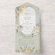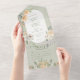 AUCH MIT EINEM QR CODE IM UAWG BEREICH ERHÄLTLICH. Die Blume Creme, Gelb und Vanille umschließen einen ovalen Rahmen auf einem weichen grünen Hintergrund. Personalisierte All-In-One-Einladungen sind eine einzigartige Kombination aus einer schön gedruckten, maßgeschneiderten Einladung und einer leicht zu abreißenden perforierten UAWG-Postkarte. Und sie sind so einfach zu bedienen! Man falte einfach, dann Siegel die Rückklappe mit den drei beiliegenden Klarkleben, und Post. Und wenn Ihre Gäste Ihre persönliche Einladung erhalten, reißen sie einfach die perforierte RSVP Karte ab und lassen sie in der Mail an Sie zurück!