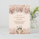 Eine moderne, stilvolle und glamouröse Einladung zu einer Geburtstagsfeier. Creme, pfirsichfarbener Hintergrund, mit einem Korb mit Flöten dekoriert, Schaumweinflaschen und beige cremefarbene Blume. Personalisieren Sie Ihre Party-Daten und fügen Sie sie hinzu.