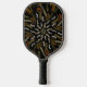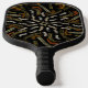 Pickleball-Schläger bedruckt mit einem cremigen, goldgelben, geharkten Muster auf schwarzem, sechseitigem, symmetrischem, wiederholtem, geometrischem, originalgrafischem Kunstdesign von TheFabricSeal auf Zazzle #ZazzleMade https://www.zazzle.com/store/thefabricseal