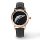 Uhr, Klassische Damenuhr mit schwarzen Lederarmband