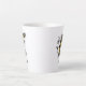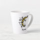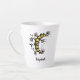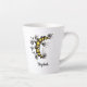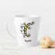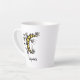 Crescent Mond personalisierte latte Tasse mit einer schattigen Vektorgrafik dieser gelben Himmelskörper verpackt abstrakten lily Blume und anpassbare Namen. Dieses seltsame digitale Mondwerk ist in einem Stil gezeichnet, der Tattoos mit dicken schwarzen Konturen ähnelt. Es hat eine Mischung aus gotischem und böhmischem Gefühl.