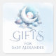 Das Design der Babydusche-Geschenk-Tag bietet blau und grau Aquarellfarben Halbmond, ein abstraktes Babygesicht und flauschige Wolken, die mit eleganter Retro-Typografie gepaart sind.
